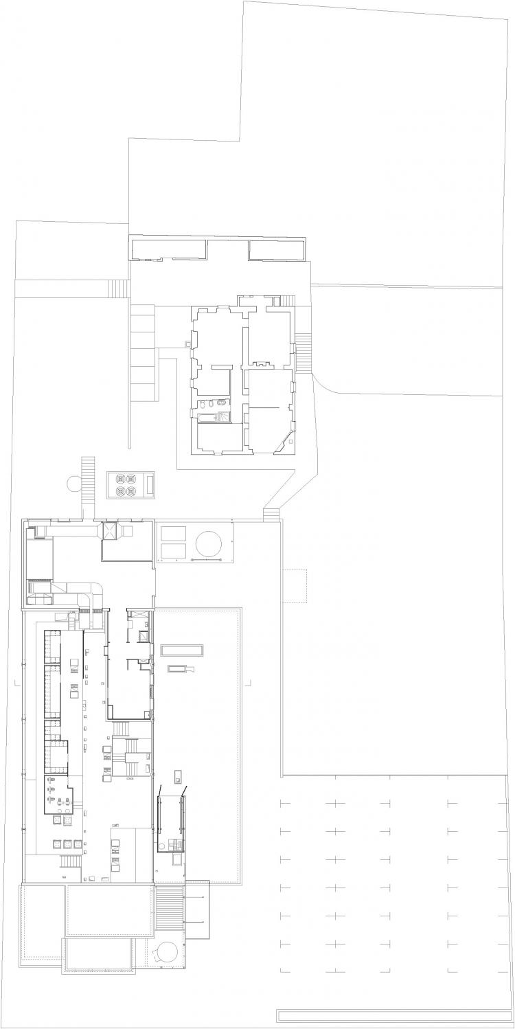 Rinnovamento globale degli spazi a partire da un edificio anni '60, di un solo piano, adibito a produzione farmaceutica in ambiente non classificato GMP. L'aspetto piú importante é rappresentato dalle nuove installazioni necessarie al controllo dell'aria all'interno degli ambienti di produzione, controlli messi in atto sia attraverso la disposizione dei locali di produzione, sia attraverso l'introduzione di nuove e ingenti infrastrutture tecniche. Il progetto prevede di sopraelevare di un piano l'edificio esistente e costruire gli spazi per la nuova tecnica. Un nuovo tetto metallico sottile e in leggera pendenza, sormontato da protuberanze di diversa dimensione è stato l'oggetto principale della riformulazione dell'involucro.