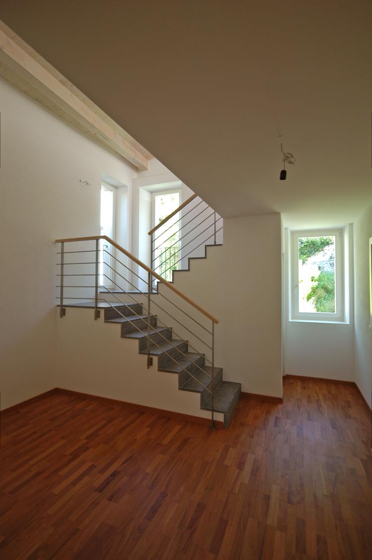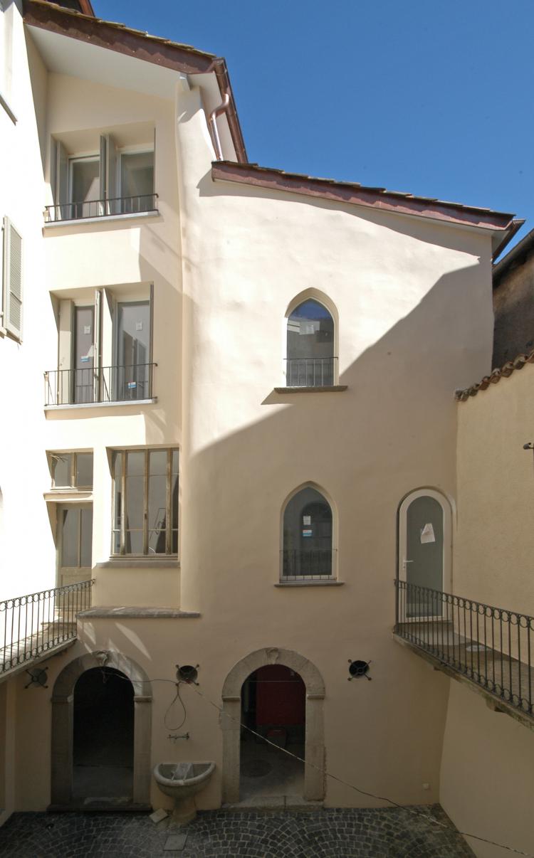 Quella che oggi è nota come “Casa Paleari, in piazza Granda” a Morcote, e che si è probabilmente sviluppata da un nucleo più antico rivolto a monte si articola attorno ad una corte centrale che nello stesso tempo divide e riunisce due parti ben distinte: verso il lago i locali rappresentativi padronali e verso monte quelli di servizio. L’intervento di restauro conserva la struttura originale ottocentesca, che custodisce alcuni arredi e decori d’epoca e trasforma solo in parte il comparto di servizio a monte, di minore interesse architettonico e che risultava inoltre in uno stato precario di conservazione. Particolare attenzione è stata riservata al risanamento della corte interna con il riconsolidamento e il riposizionamento di alcuni elementi architettonici (aperture, cornici e ballatoi), essere attribuibili all’architetto Gaspare Fossati di Morcote, architetto restauratore della basilica-moschea Santa Sofia di Istanbul.
