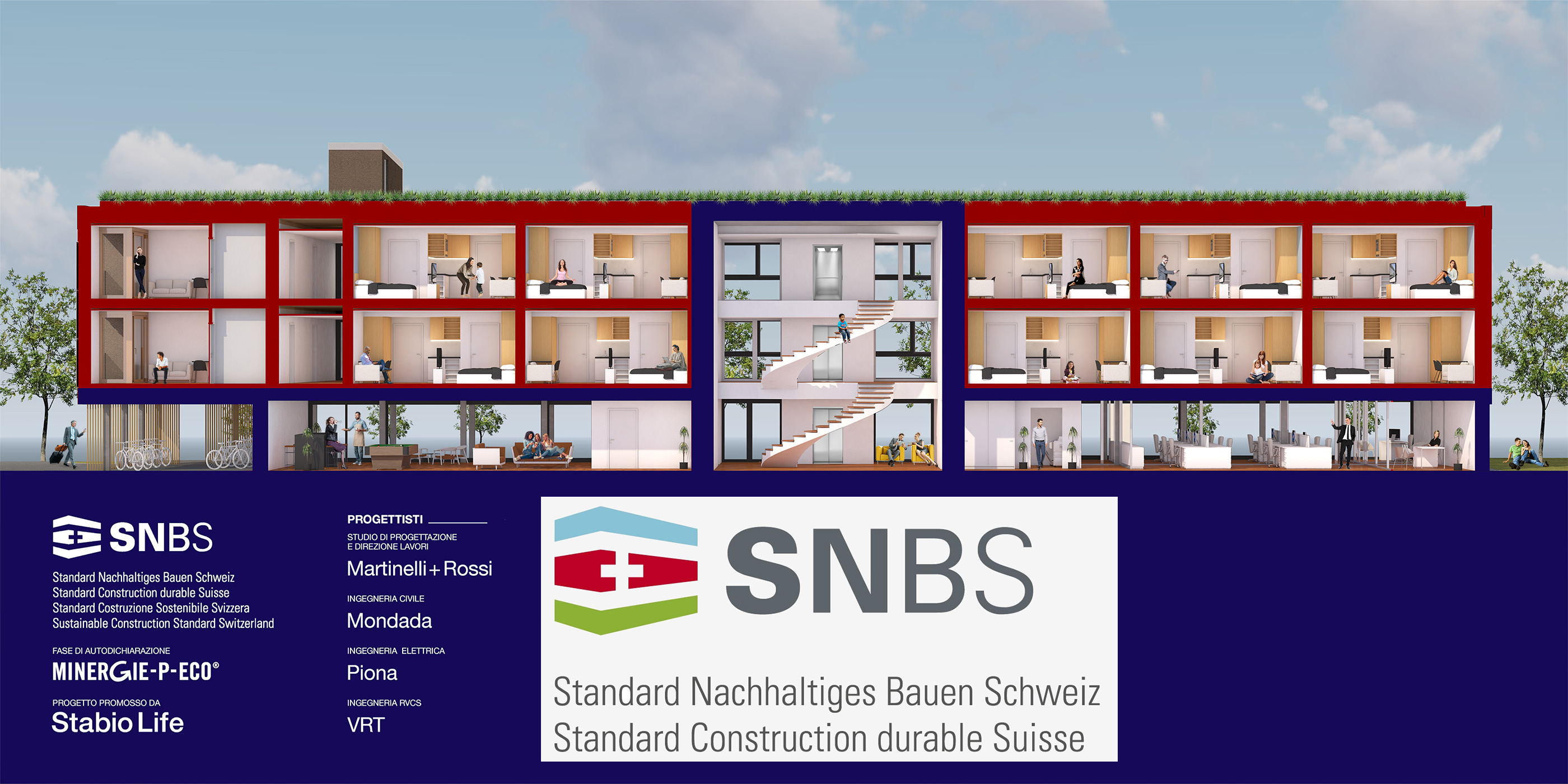 La società Stabio Life affida allo Studio Martinelli e Rossi il mandato per costruire una palazzina di una ventina di appartamenti certificata SNBS. Sarà una prima assoluta ticinese. Se infatti esistono già edifici con il marchio di costruzione efficiente sotto il profilo energetico, ed altri che coprono un aspetto dello sviluppo sostenibile, la nuova palazzina sarà la prima a rispettare l’SNBS, ovvero lo standard svizzero completo per la certificazione di edifici sostenibili.
