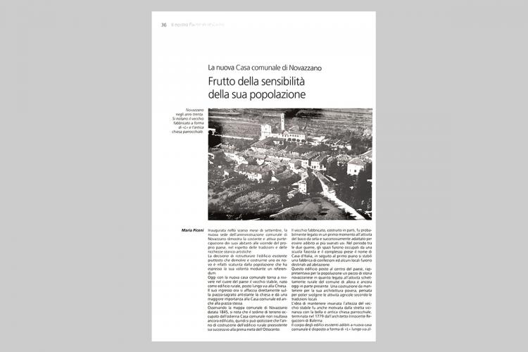 La nuova casa comunale di Novazzano - Frutto della sensibilità della sua popolazione. Articolo apparso sulla rivista trimestrale "Il nostro paese", scritto dalla giornalista Maria Piceni, che ricostruisce la storia della piazza e della Casa Comunale di Novazzano, dopo l'inaugurazione della sua ristrutturazione.
